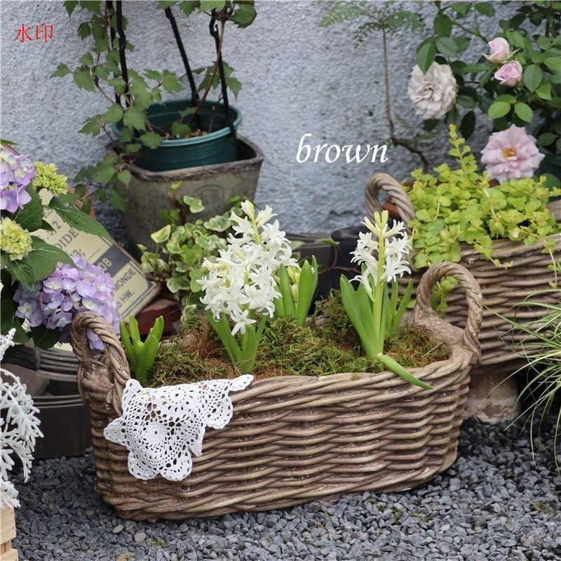 プランター ヴィンテージ調 酸化マグネシウム 編かご 鉢植え 寄せ植え フラワーポット 多肉植物 ガーデニング 雑貨 ガーデン雑貨 ガーデンインテリア ガーデン インテリア 庭の装飾 お洒落 おしゃれ