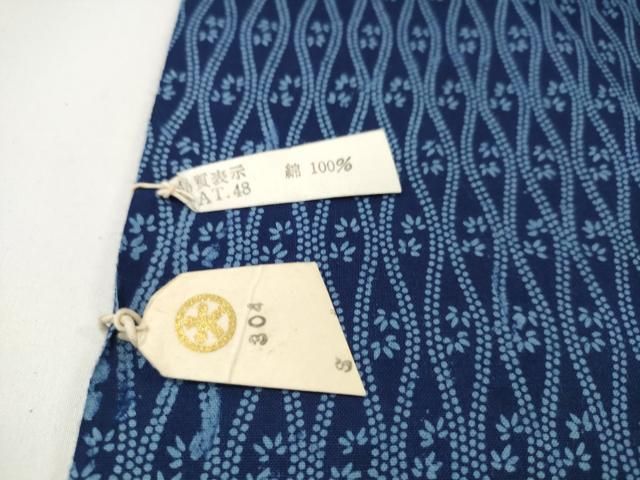 夏物 竺仙鑑製 浴衣 反物 着尺 立涌花文 証紙付き 大丸扱い 綿 kh 5
