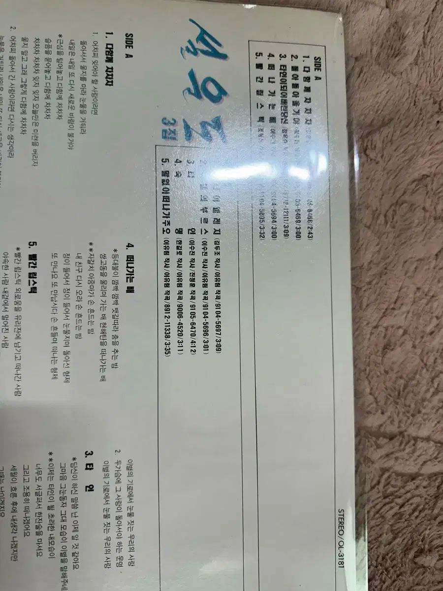 • 全体的な色合いはきれいですが、歳月の痕跡による微細な角の擦れや使用感はあります。裏面にボールペンで書いたようなコメントの痕跡(설운도 3집 など)があります。