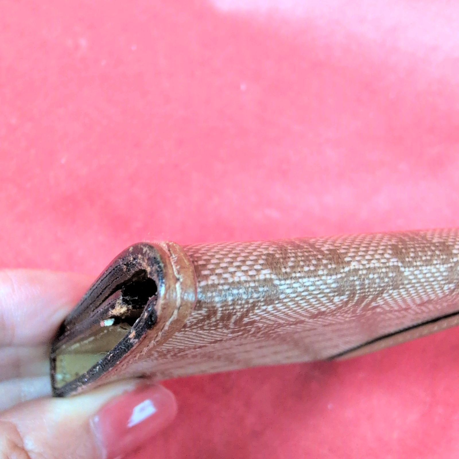 角スレや内側の使用感がみられますが、目立つシミ汚れなどもなくまだまだご使用いただけるかと思います。(お写真ご覧ください)