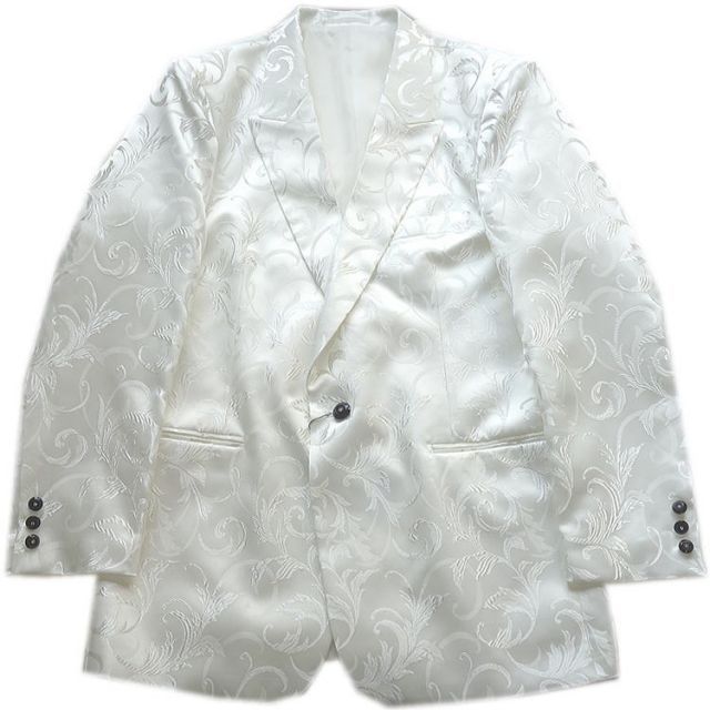 商品名:日本製 オールシーズン春夏秋冬物 BLACK GULL/ブラックガル【送料無料】つる草模様 総柄 ラインストーン釦 織物素材 ピーク衿 ステージ 舞台衣裳 カラオケ マジック イベント 1つ釦シングルジャケット 白:L【smtb-k】【ky】父の日【YDKG-k】メンズ【ky】ギフト【RCP】487