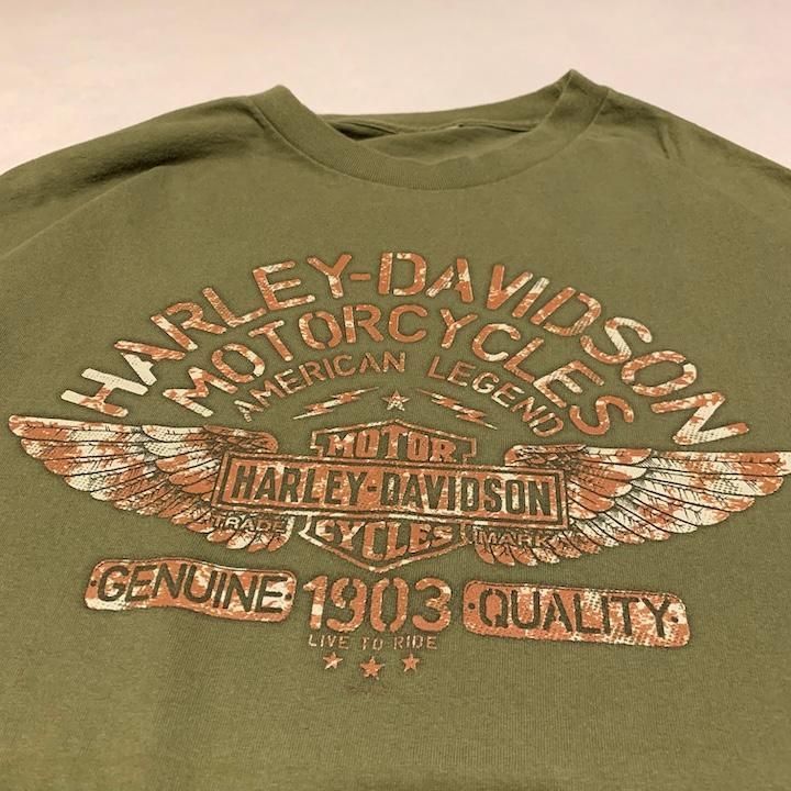 ハーレーダビッドソン 古着 ロンT カーキ スモーキーマウンテン 3 XL