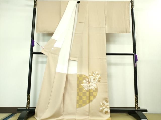 上 中国三大刺繍 蘇州刺繍 色留袖 駒刺繍 菊 肌色地 金彩 反端付き kh 5