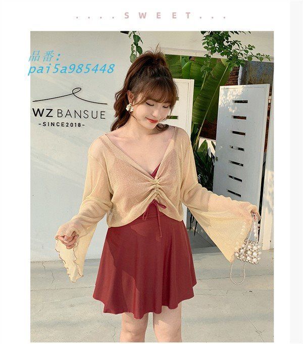 2点セット 水着 大きいサイズ レディース 体型カバー ぽっちゃり 服みたいな ワンピース ボレロ おしゃれ かわいい オールインワン ハイウエスト オトナ女子 温泉 露出控えめ セクシー 韓国風 大人 女性用 水着 20代 30代 40代 。 細見え ラッシュガード レッドZU