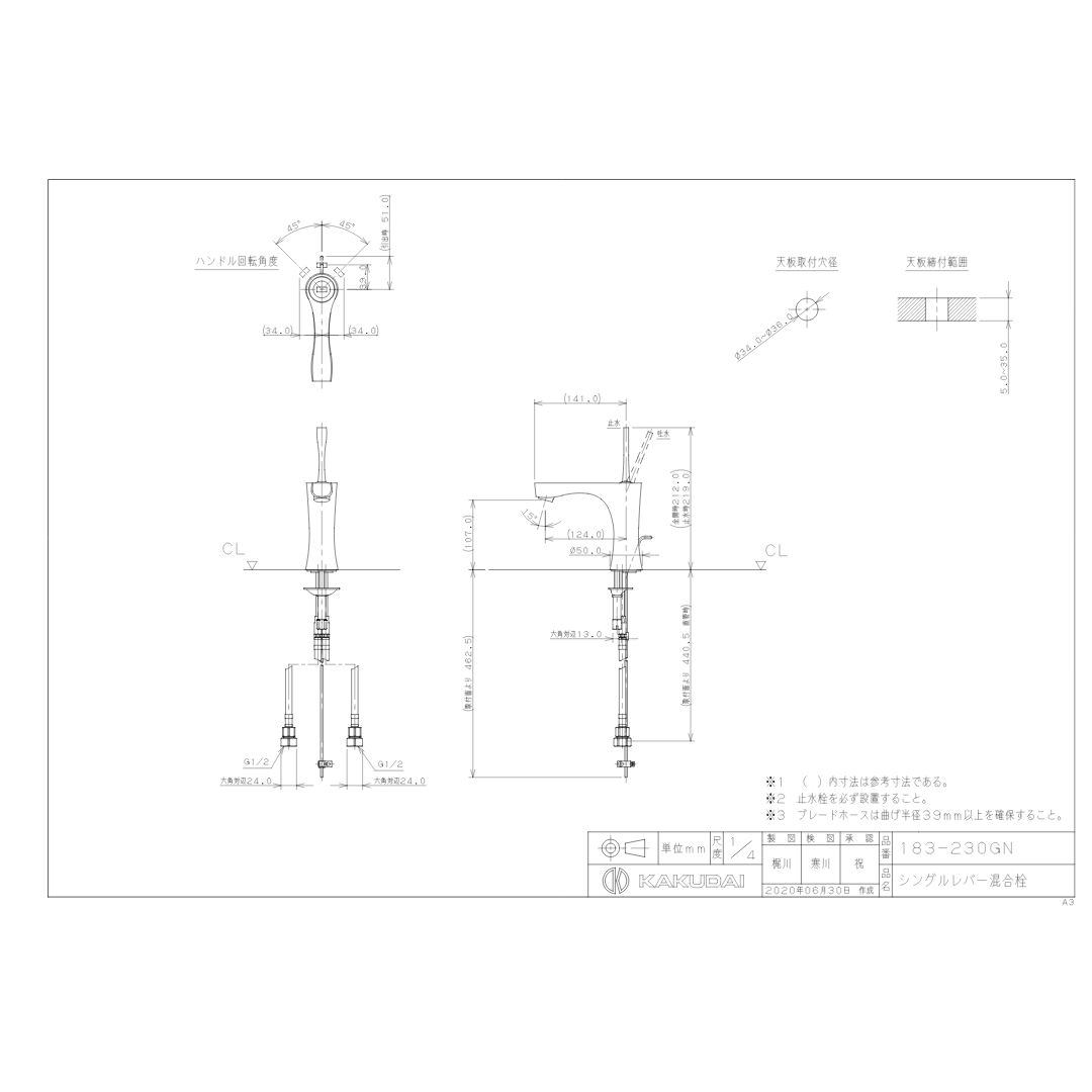 洗面 カクダイ シングルレバー混合栓 _183-230 GN