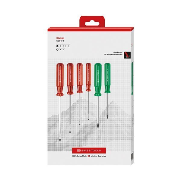 PB SWISS TOOLS ピービースイスツールズ 6本組 クラシックハンドル ドライバーセット マイナス ポジドライブ ペーパーボックス入 1568 CBB