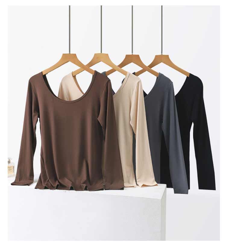 程よく深めなUネックなので、Yシャツなどから見えにくく薄手のトップスにも使いやすい。
