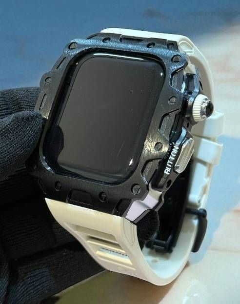 サンドホワイト 別注強化型ブラックバックルモデル アップルウォッチケース カスタム カバー 保護 46 アップルウォッチ series 10 11 ラバーバンド ベルト