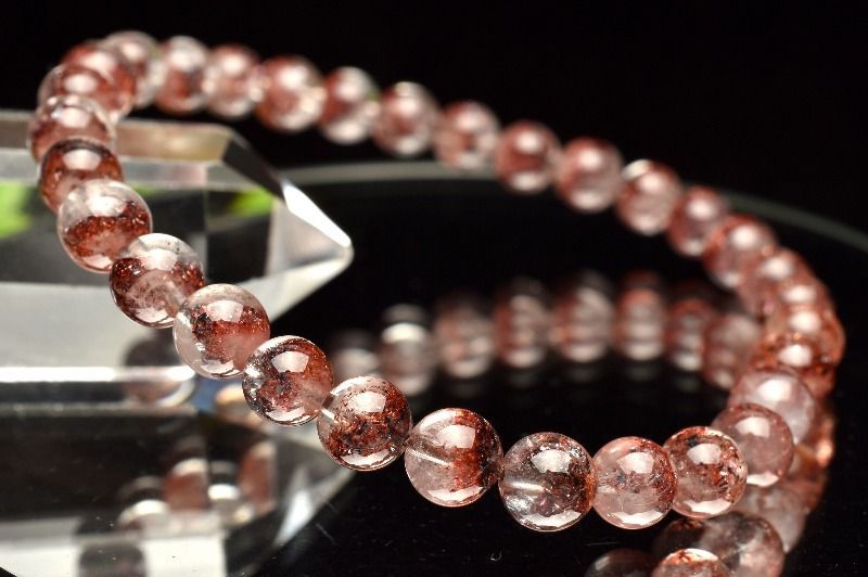 1点物 AAA ピラミッドファントム ストロベリークォーツ レピドクロサイトインクォーツ 5.5 mm ブレスレット パワーストーン 天然石 _MA 9179