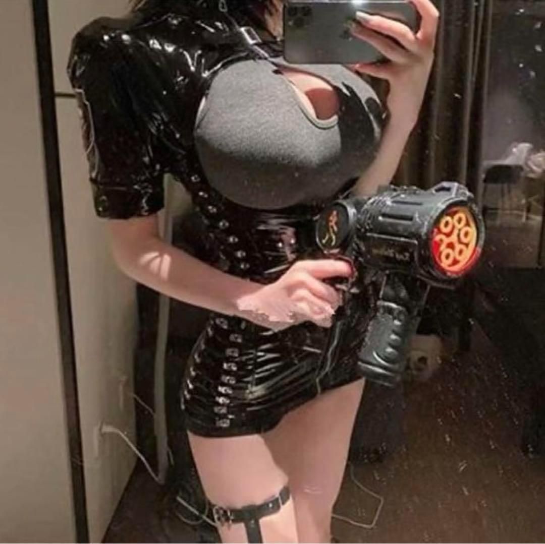 ロング手袋-ニーハイ付きセクシー超光沢エナメル暗黒王朝ダークナース服コスプレ衣装フルセット 看護婦制服ボディスーツ ボンテージ コスチューム 撮影会写真撮影 イベント仮装 ハロウインコスプレ大人レディース クラブライブ推し活ステージ衣装 在宅コスプレボディコン