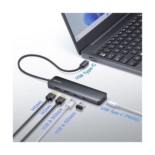 サンワサプライ USB Type-C ドッキングステーション ブラック USB-