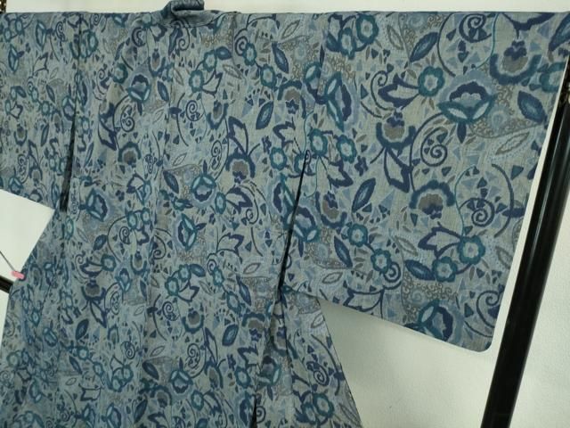 平和屋着物 上 夏物 本場小千谷ちぢみ 麻 花唐草文 kh 5