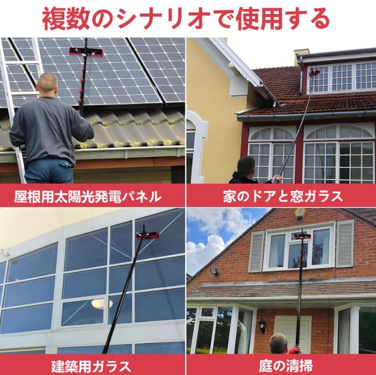 【長距離伸縮ポール】給水ポールは3.6Mから10.8Mまで伸びることができ、ソーラーパネル、窓、テラス、家の近くのその他の高い表面を簡単に掃除できます。 また、ホースをブラシヘッドに接続すると、水を排出してどこでもすぐに掃除できます。 また、ホースをブラシヘッドに接続すると、水を排出してどこでもすぐに掃除できます。