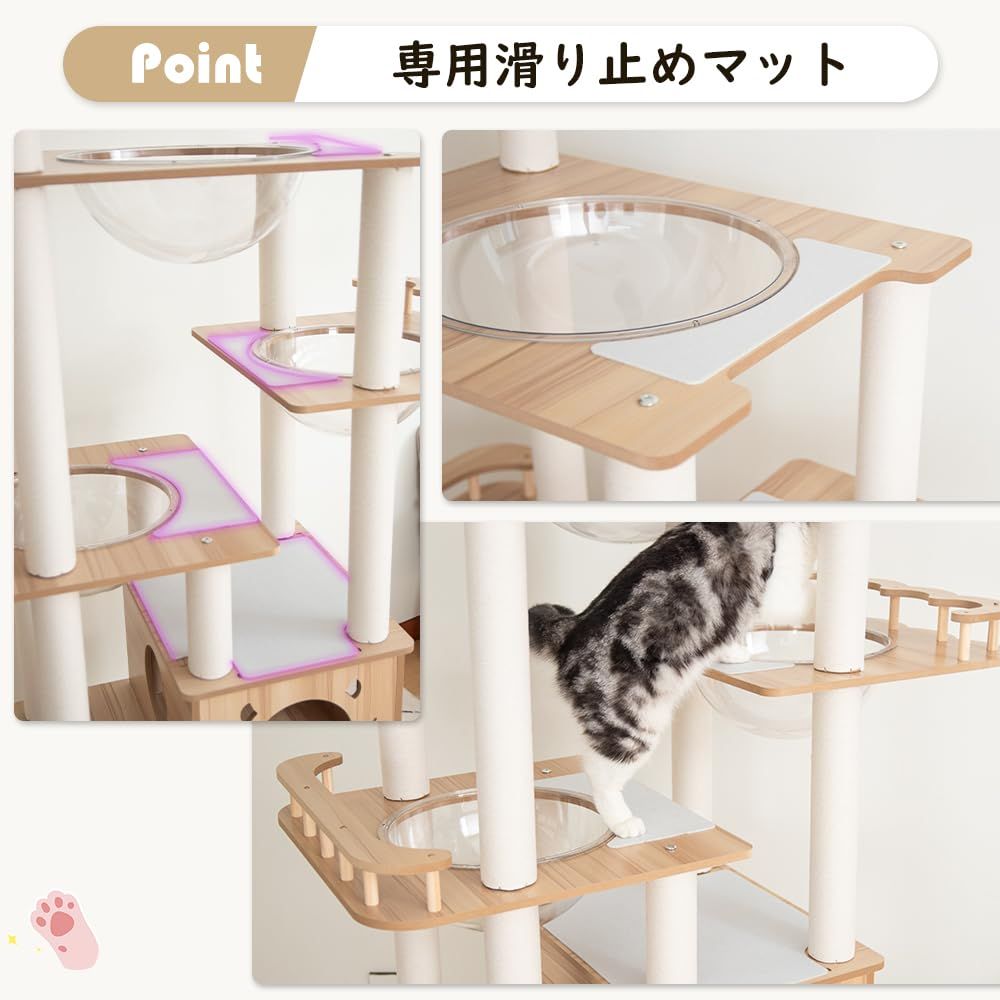 【なになにLife】 キャットタワー 木製 据え置き 大型 おしゃれ 高さ185cm \滑り止めマット付き/ 木目調 キャットタワー 多頭飼い シニア猫 高級 展望台 スリム 猫タワー スクラッチ 大型猫 ストレス発散 見晴台 中型 成猫 子猫 爪研ぎポール キャットツリー インテリア性 壁際ぴったり 宇宙船3個 クリアボウル 隠れ家 爪とぎ 安定 運動不足解消 麻紐 猫ハウス 猫ベッド 麻紐