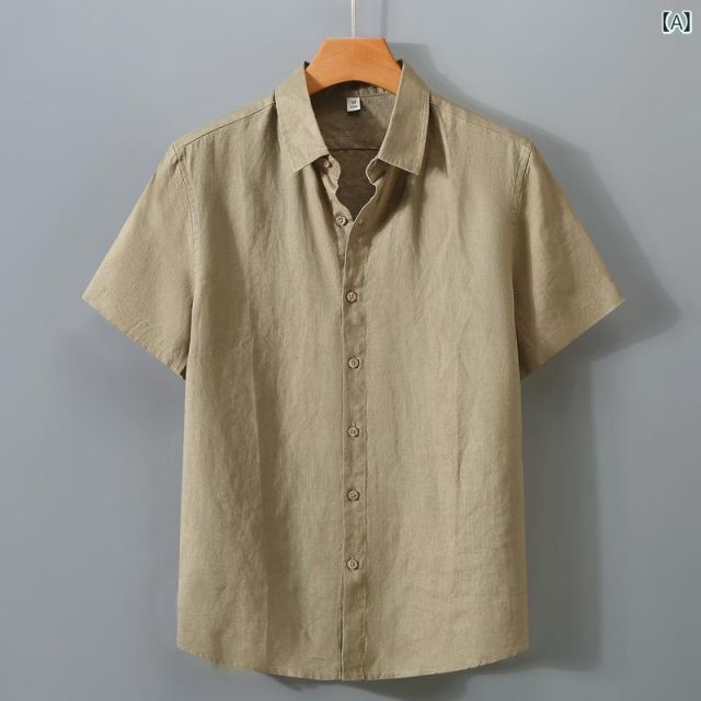 2 XL メンズ ファッション 服 男性用 オシャレ シンプル 大人 かっこいい 大きいサイズ ストリート 紳士服 リネンシャツ 半袖 夏 薄手 通気性 リネン コットン シャツ