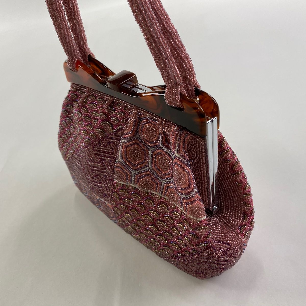 和装バッグ 秀品 ビーズバッグ フォーマル 青海波 亀甲 赤紫 ビーズ 和装小物