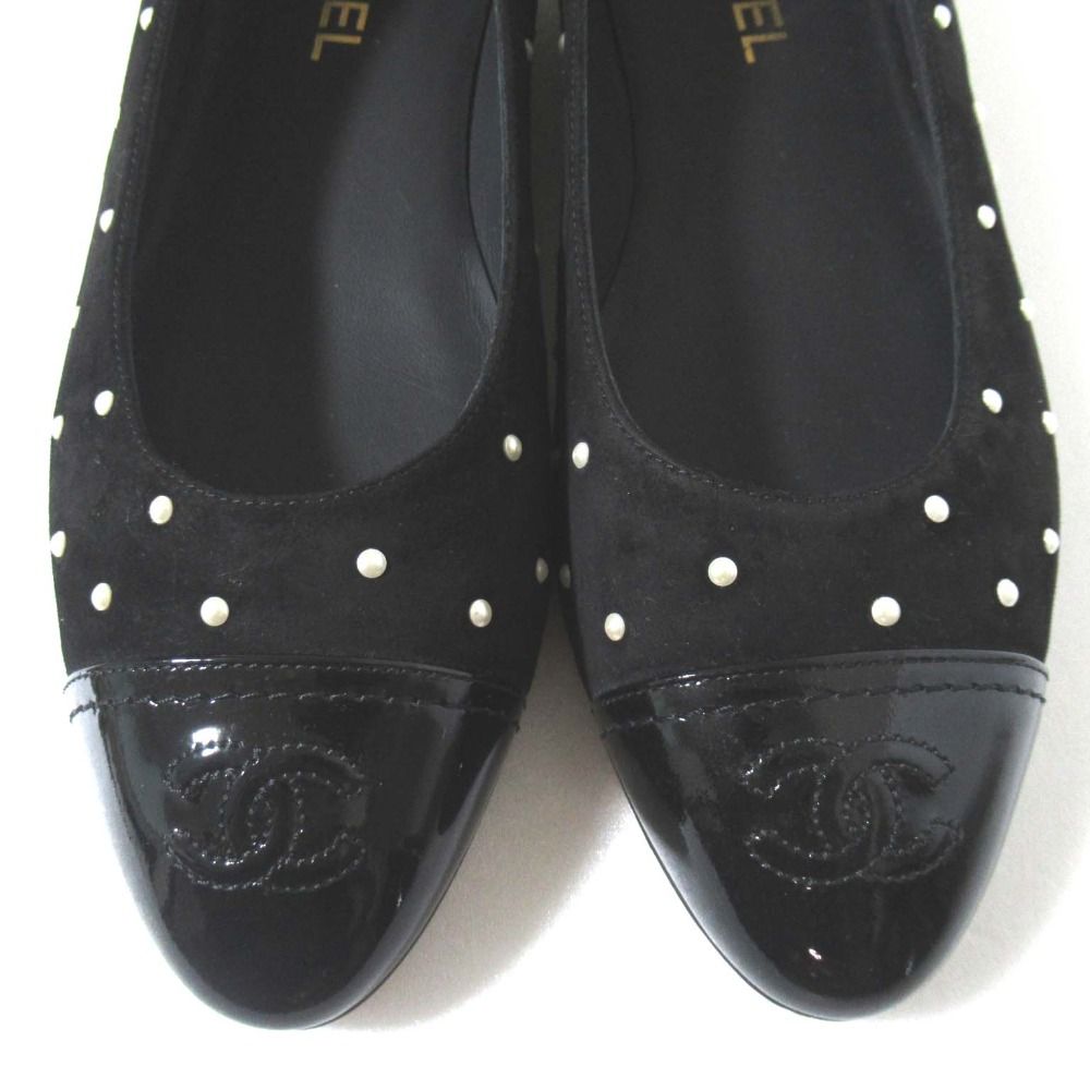 【商品名】CHANEL シャネル ココマーク パール装飾 スエード×パテントレザー フラットパンプス G33424 サイズ40C 約25.5cm ブラック
