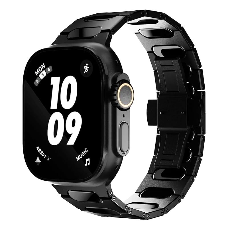 ?あなたの腕にラグジュアリーな印象をプラスするブラックリンクチタンバンド。 チタン素材を使用し、黒一色のデザインがシンプルかつエレガントな輝きを放ちます。 ビジネスからカジュアルまで幅広いシーンにマッチし、腕元を引き締める重厚な存在感が特徴です。 しっかりとした作りで、耐久性も抜群。 装着と調整が容易で、Apple Watchをさらにスタイリッシュに演出するこのバンドは、デザインと機能性を兼ね備えた大人のためのアイテムです。