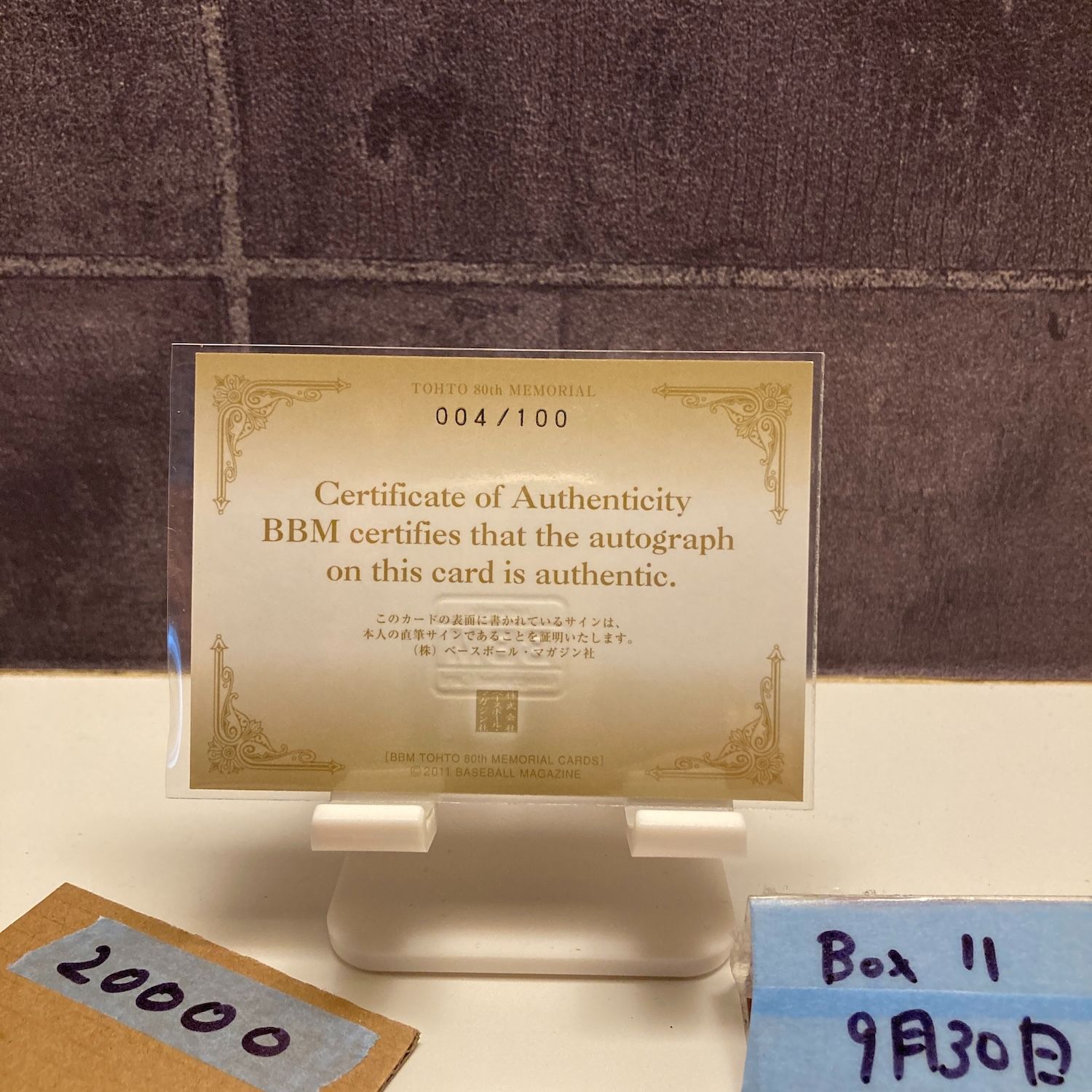2011 BBM Tohto 80th Memorial 井端弘和 004/100 直筆サイン