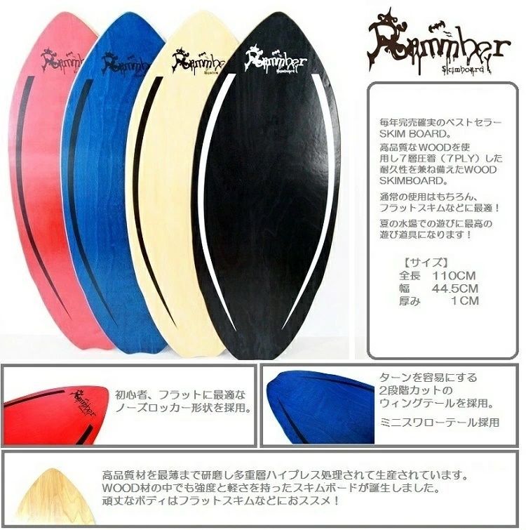 ウッド スキムボード RAMMBER SKIM BOARD WOOD PRO MODEL ランバースキム ウッドプロモデル 110 CM COLOR ハイスペック高品質ウッド スキム フラットスキム