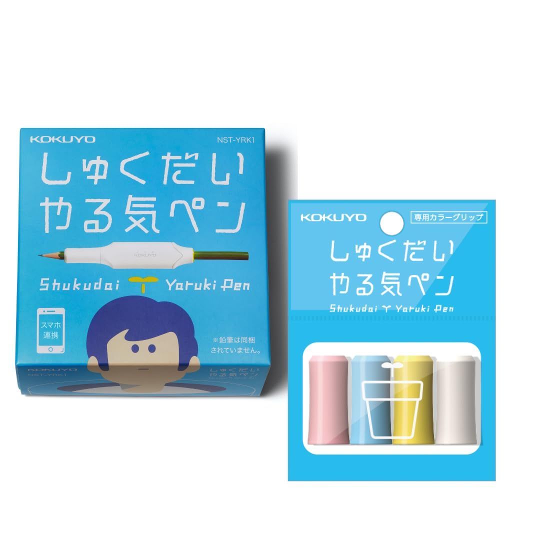 コクヨ(KOKUYO) しゅくだいやる気ペン +カラーグリップ付き 【iOS・Android両対応】NST-YRK1 いつもの鉛筆に取り付けてやる気アップ