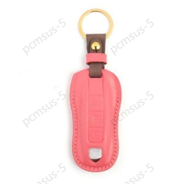 ポルシェ Porsche 新型パナメーラ 新型カイエン 手作り本革キーケース スマートキーカバー ローズピンク 2年保証 ファッション