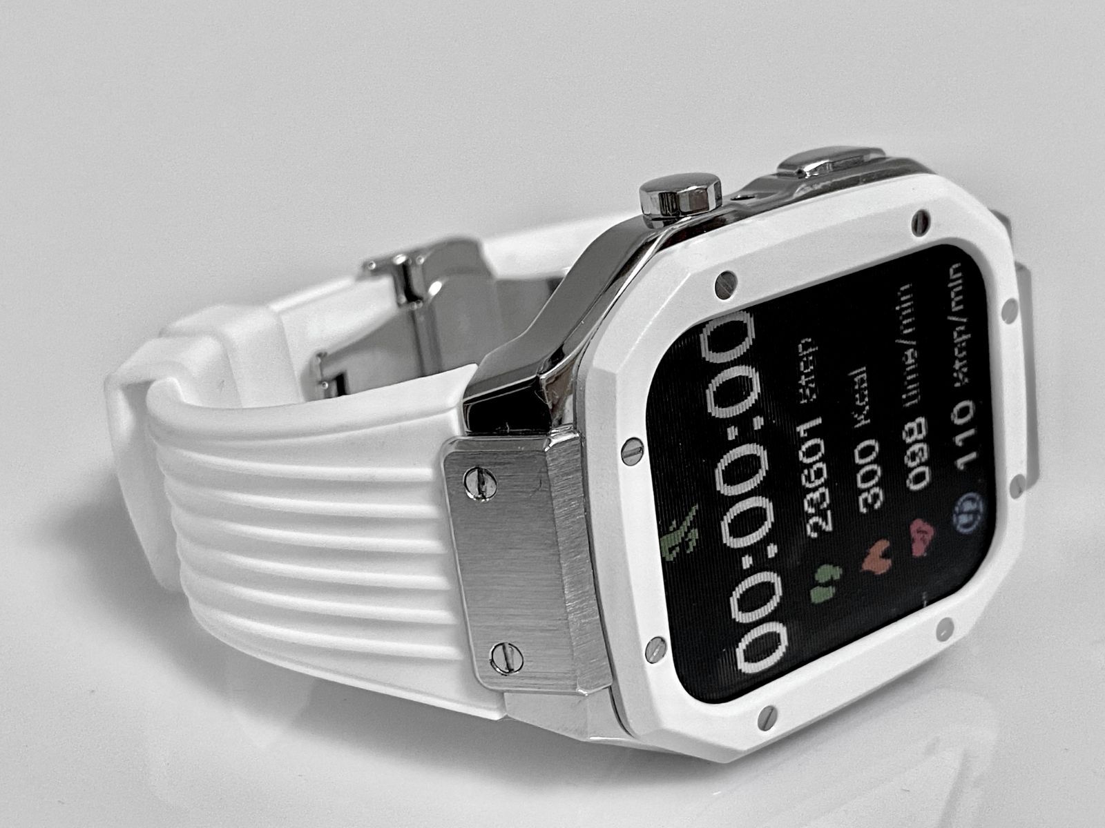 TC アップルウォッチバンド ラバーベルト ステンレス カバー Apple Watch ケース 44 mm 45 4 5 6 7 8 9 se メンズ レディース スポーツ07