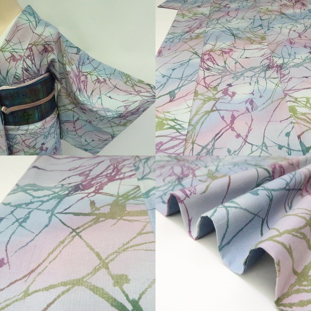 ✾まめ藤✾m2211 正絹 京友禅 手縫い仕立て 上州白滝紬