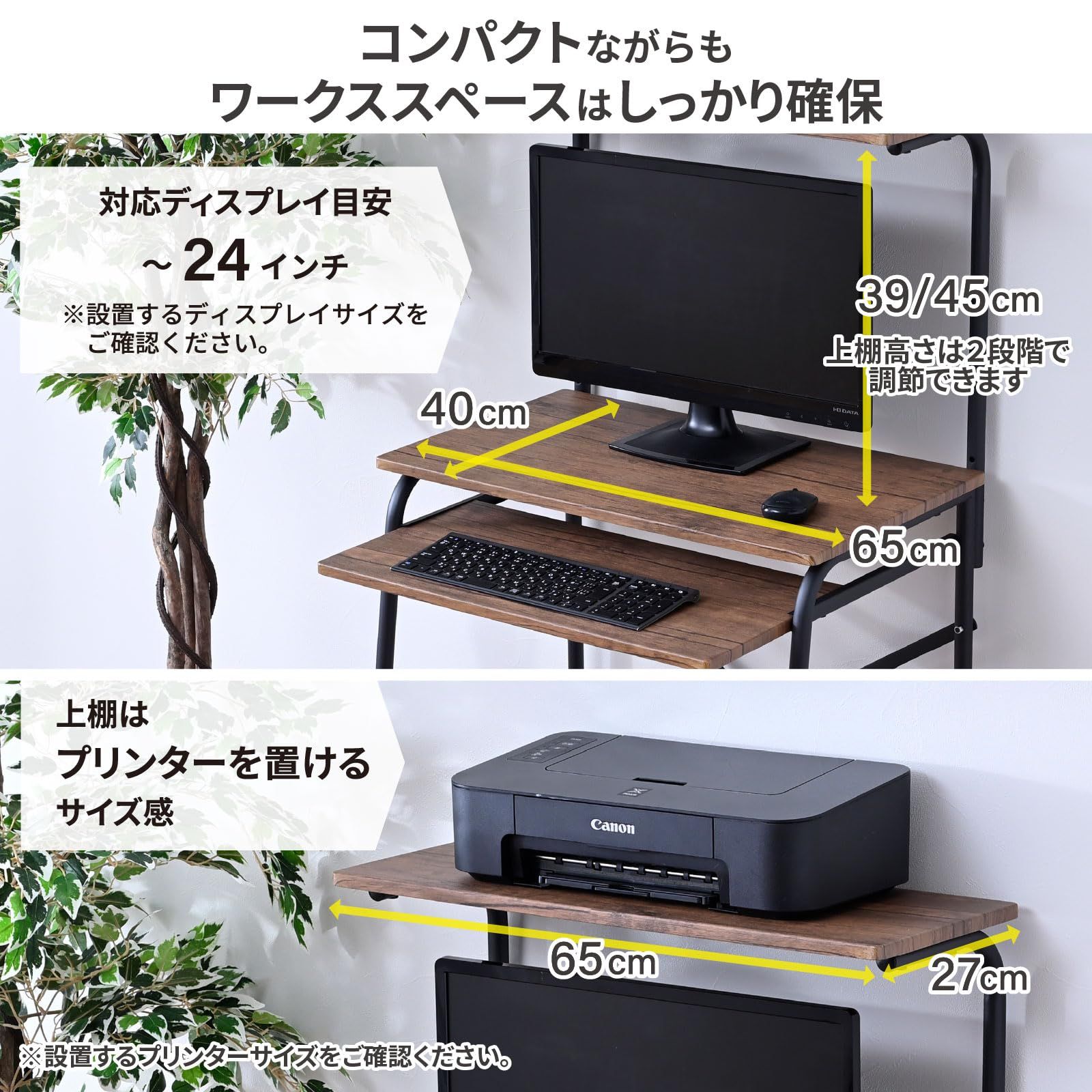 【PCディスプレイ対応目安】~24インチ(天板内寸:幅65×奥行49×高さ39/45㎝)※お使いのディスプレイのサイズをよくご確認下さい