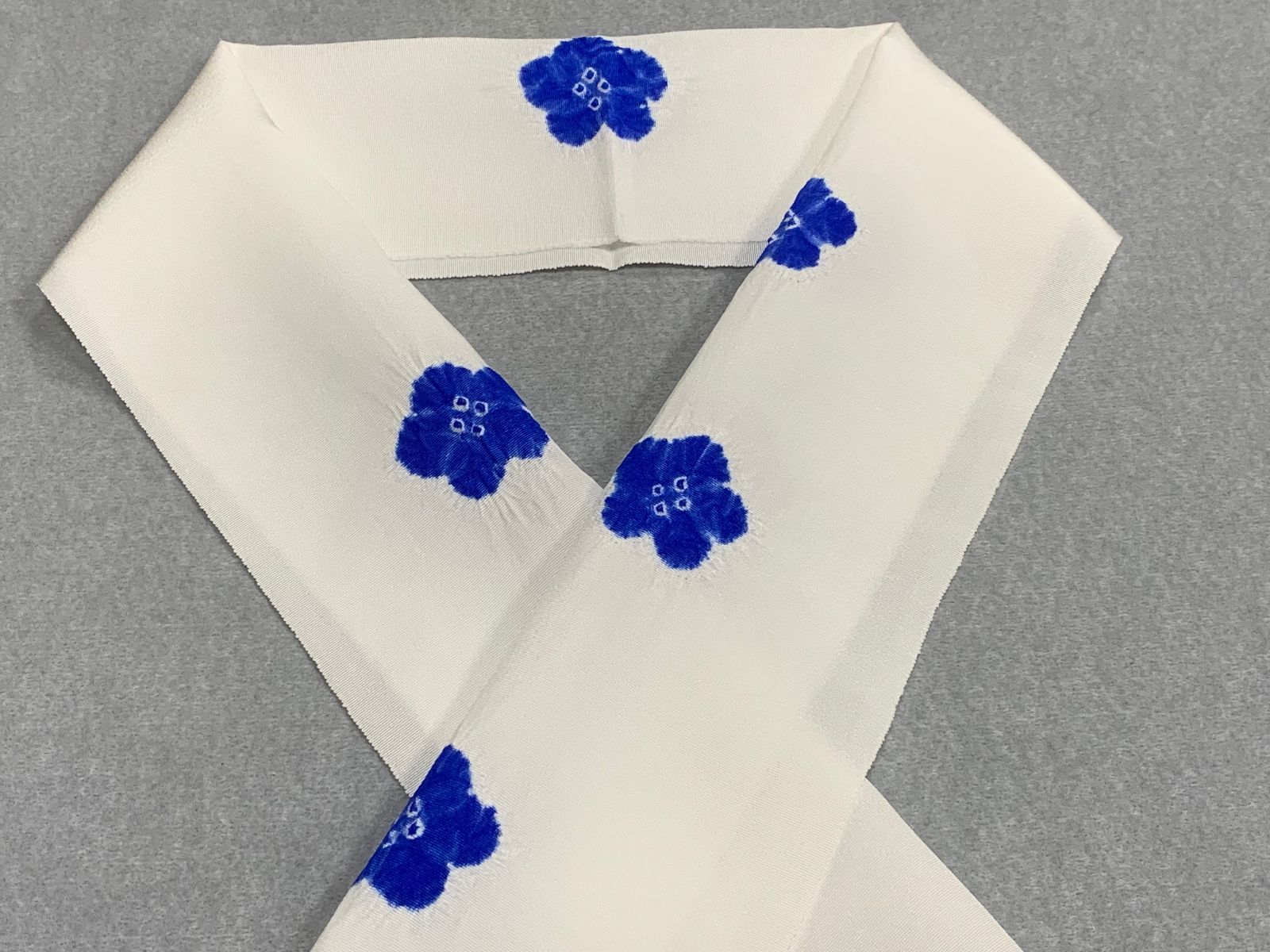 の品 京都 衿秀謹製 正絹りんだし半衿 おしゃれから準礼装まで 白地にコバルトブルー色の絞り