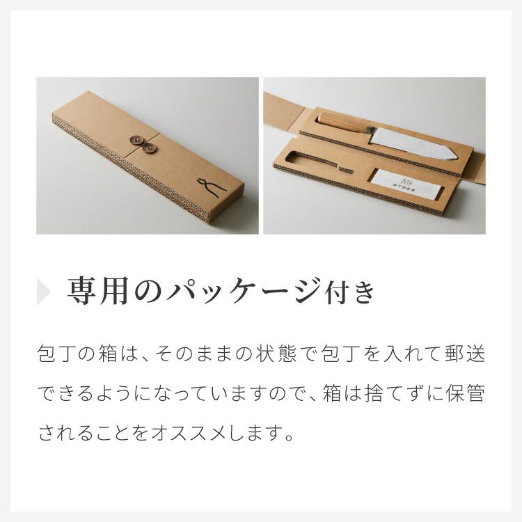 庖丁の箱はそのままの状態で庖丁を入れて郵送できるようになっていますので、箱は捨てずに保管されることがおすすめです。