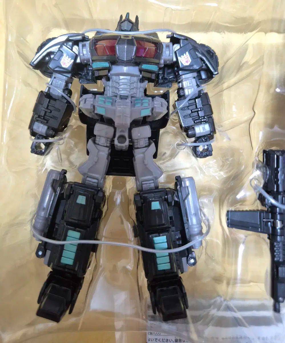 第三者がリリースしたダークサイドオプティマス専用の武器を含めて販売されています。使ったことはないけど、開封が荒くて、パッケージが傷んでいます。武器フィギュアは良好な状態です。