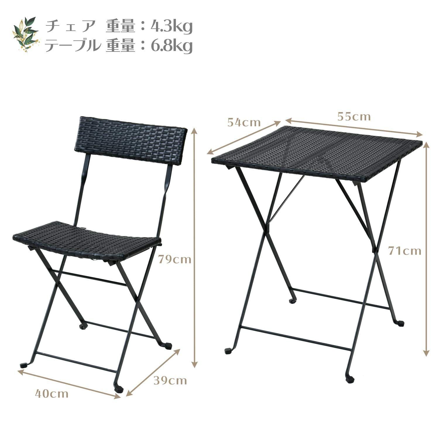 【仕様】テーブルサイズ:幅55×奥行54×高さ71cm、重量:5.2kg/チェアサイズ:幅40×奥行39×高さ79cm、重量:4.3kg/セット内容:テーブル×1、チェア×2