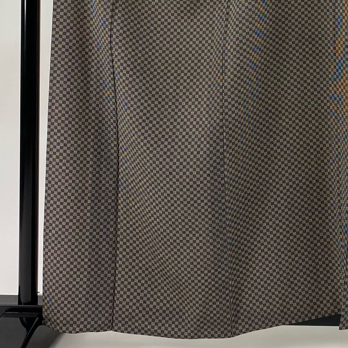 小紋 身丈159 cm 裄丈68.5 L 単衣 市松 焦茶色 正絹 秀品