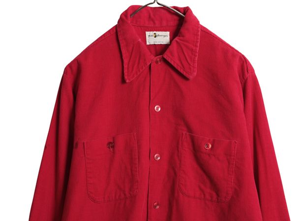 な ! 70 s MacPhergus 細畝 コーデュロイ シャツ メンズ L 古着 ヴィンテージ 雰囲気系 ボックス 長袖シャツ ポケット付き コットン 赤 無地