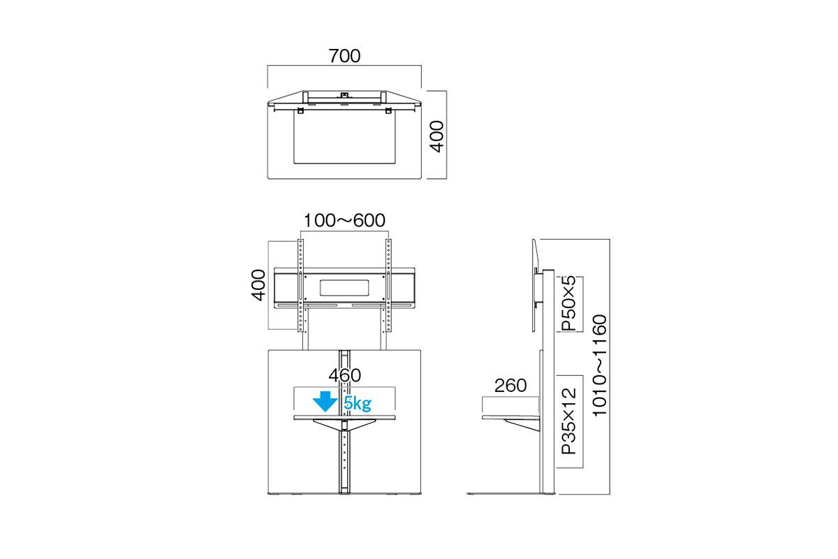 ●外形寸法:幅 700 × 奥行き 400 × 高さ 1010 (mm)質量:約23.5kg