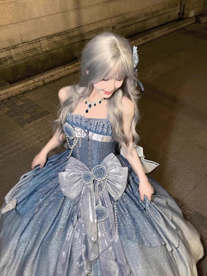 夜空に咲く青薔薇の輝き 月光を纏うロイヤルブルードレス ゴスロリ