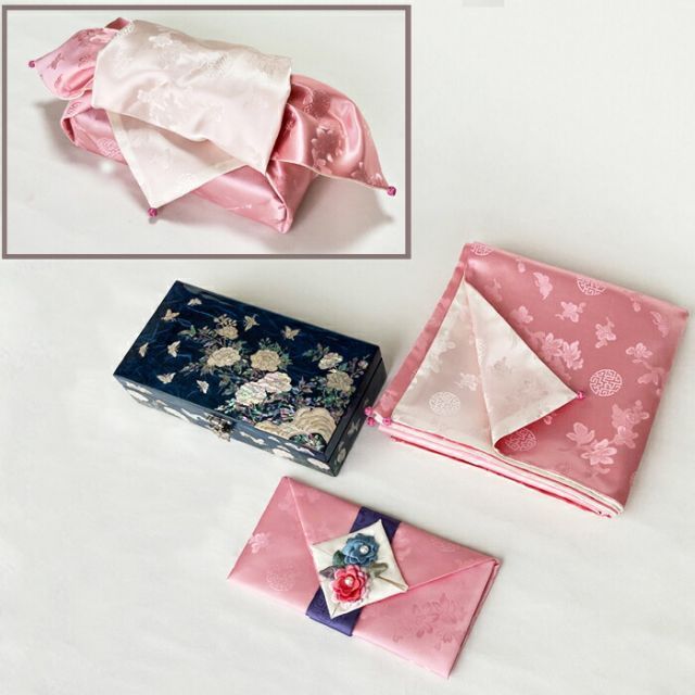 韓国語でポンチェグム(結納金)結納金を入れる螺鈿の箱とや金を包む袱紗、風呂敷のセットです。