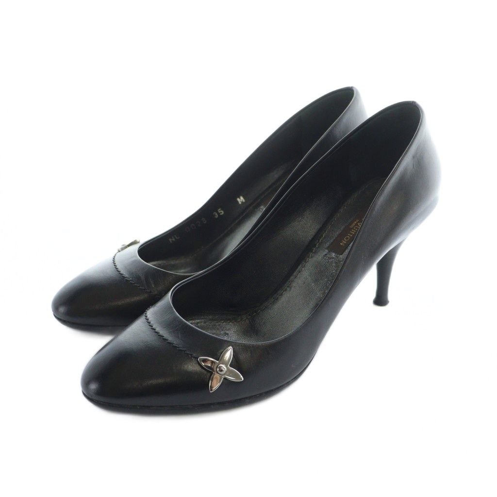 ルイヴィトン LOUIS VUITTON パンプス シューズ 靴 ロゴ ハイヒール フラワー レザー 35 22.5 cm 黒 ブラック GY 01 MQ OH
