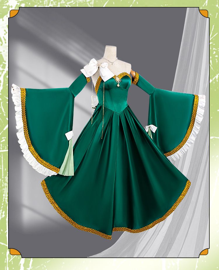 [カラー]C.C.グリーンイブニングドレスフルセット[アクセサリー付き](ワンピース,スリーブ,インナースカート,アクセサリー,ショルダーネックレス)