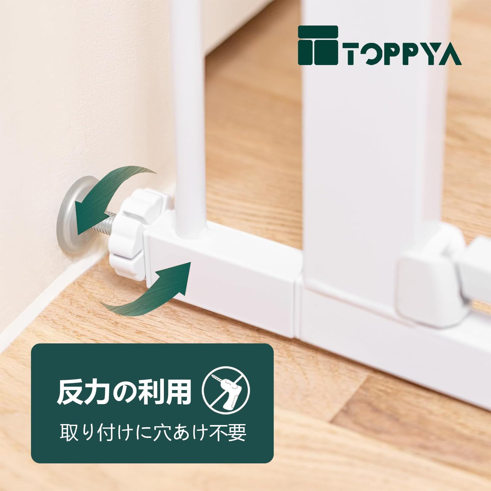 TOPPYA 階段 ゲート ペットゲート ベビーゲート スチールゲート 階段上 置くだけ 高さ76cm 取付幅109~120cm 突っ張りタイプ あつりょくとりつけ 穴あけ不要 中型 大型ペット子供用 室内 玄関 階段 脱走防止フェンス 柵 安心安全ダブルロック機能 育児用品 自動開閉 ホワイト