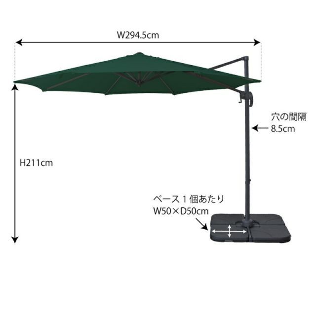 商品名ガーデンパラソルW294×D360×H252グリーン