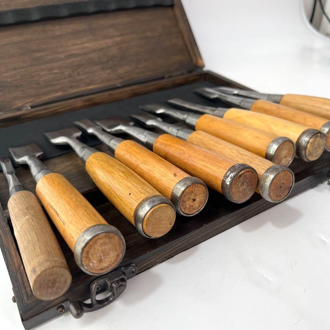 さ8 大工道具 鑿10本セット 追入盤 叩き鑿 突き鑿 桐 き 収納ケース付き