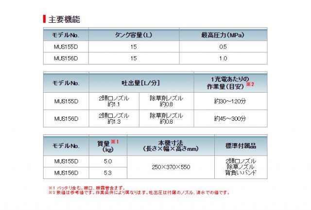 マキタ充電式噴霧器MUS156DZ