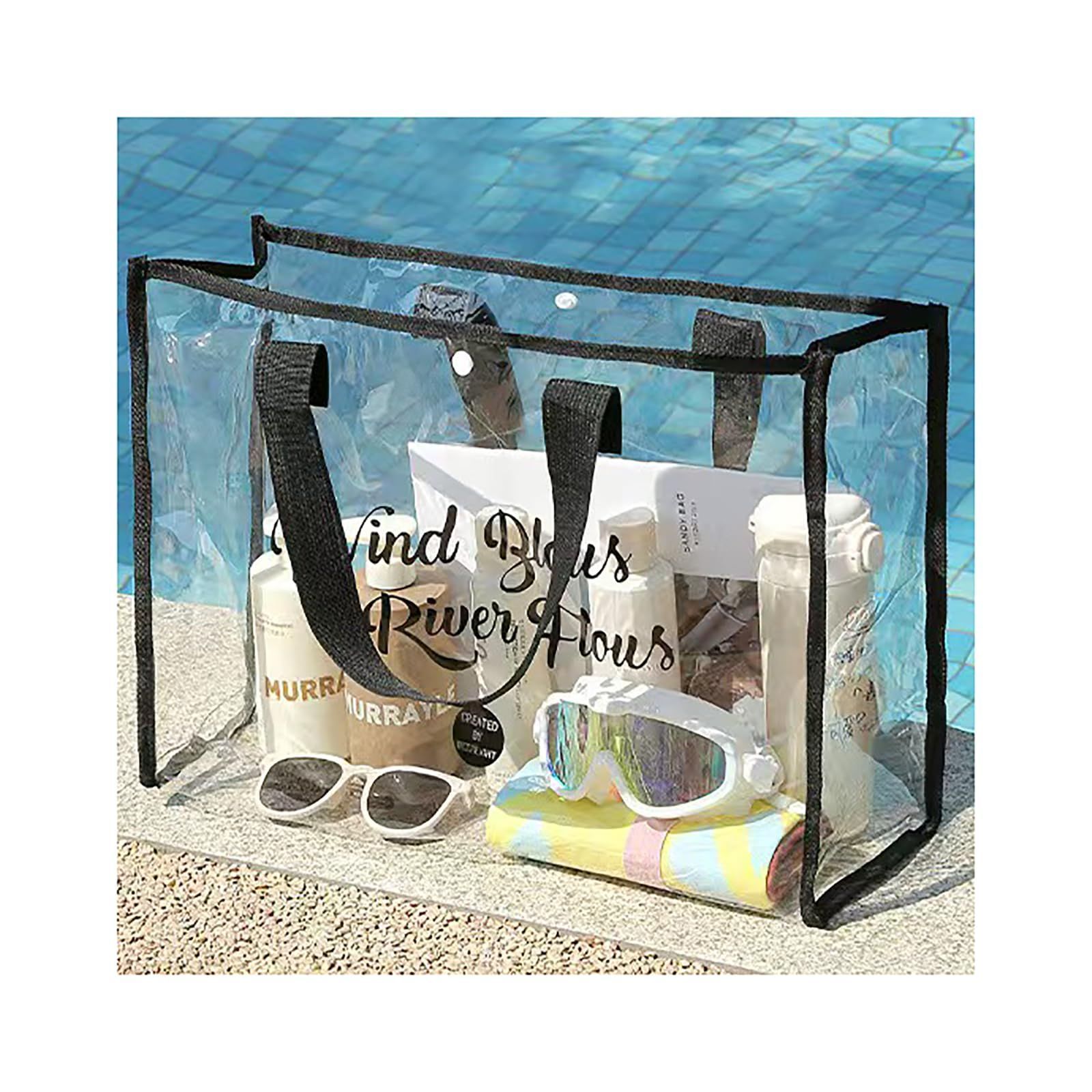 [Kimstore] プールバッグ 透明ビニールバッグ pvc 汚れにくい 防水 大容量 手提げバッグ お持ち運び便利 男女兼用 ビーチ/水泳/温泉/旅行/アウトドア用 (ブラック 30*30*15cm)