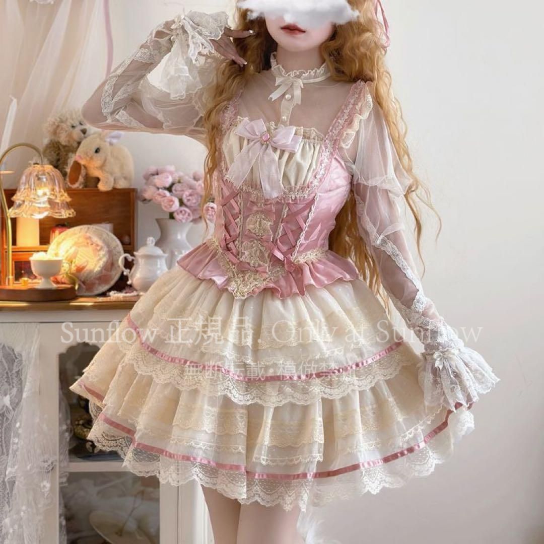 胸元には編みこみとレースの装飾が施された、レース刺繍のあるLolitaセット。特別なデザインで、かわいい森ガールをテーマとして、ゴスロリの雰囲気を出ています。