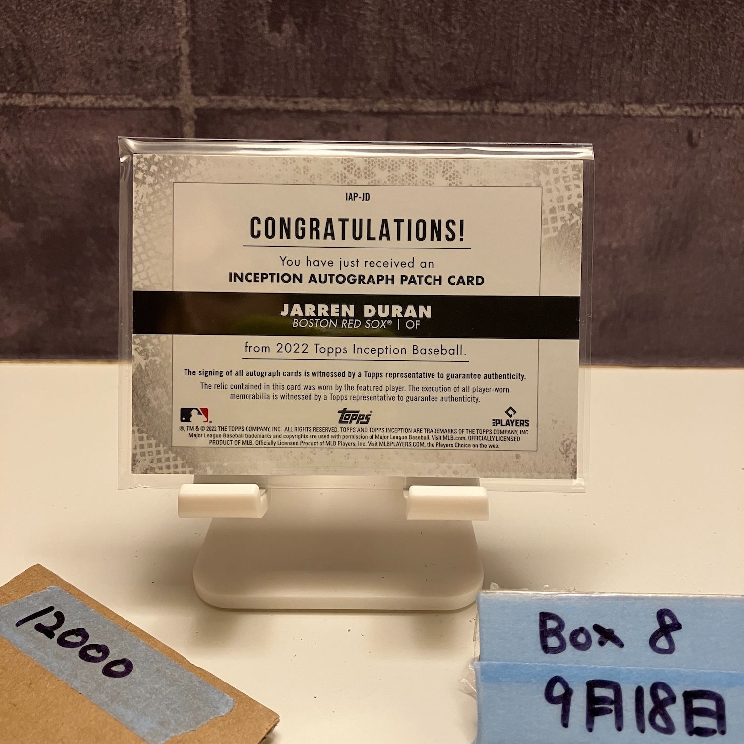 2022 Topps Inception Jarren Duran 24/50 直筆サイン Boston Red Sox Player-Worn Memorabilia パッチ