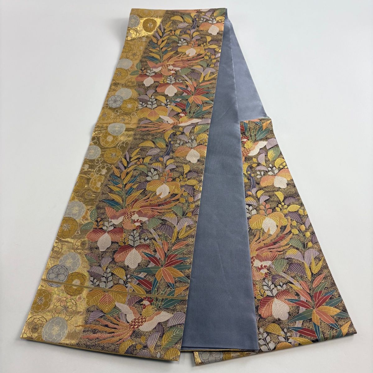 袋帯 秀品 彩華絢麗文 彩園 花鳥 金糸 箔 金色 六通 正絹