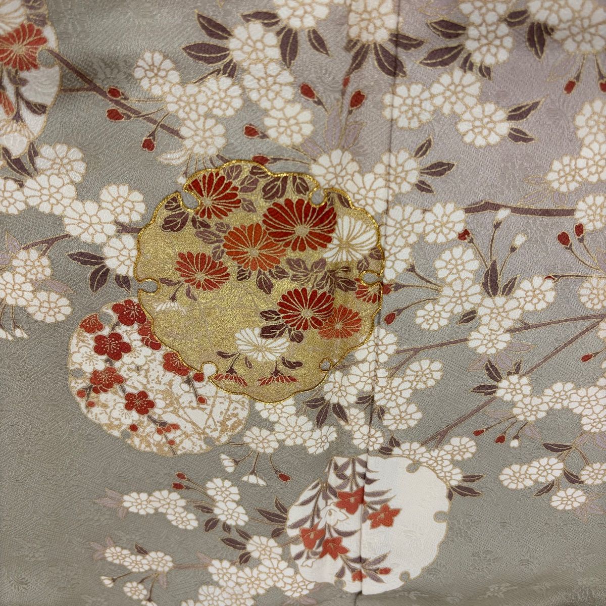 訪問着 身丈176 cm 裄丈65.5 M 袷 雪輪 桜 金糸 金彩 灰緑 正絹 秀品