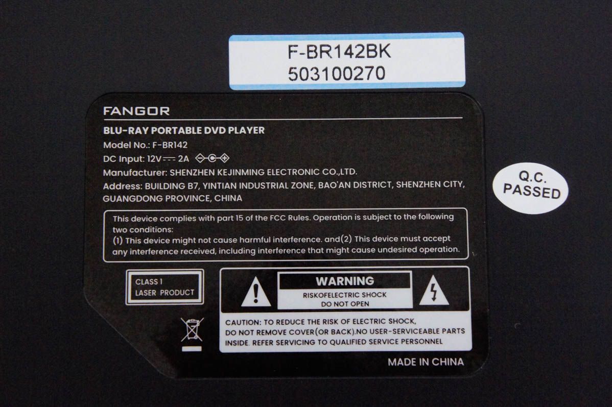 FANGOR 14.1インチ ポータブルブルーレイプレーヤー F-BR 142
